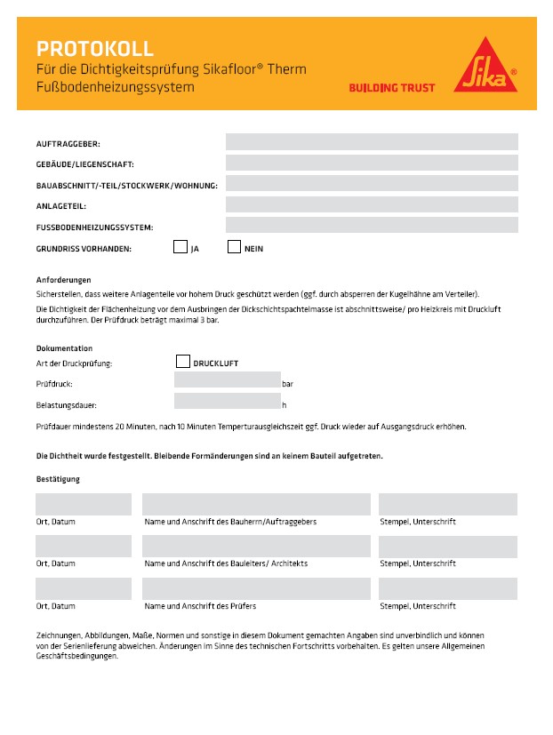 Eine ordnungsgemäße Bau-/Objektdokumentation ist von entscheidender Bedeutung, insbesondere in Streitfällen. Hier findest du wichtige Protokolle der Fußbodentechnik und Dokumentationsvorlagen zum Download.